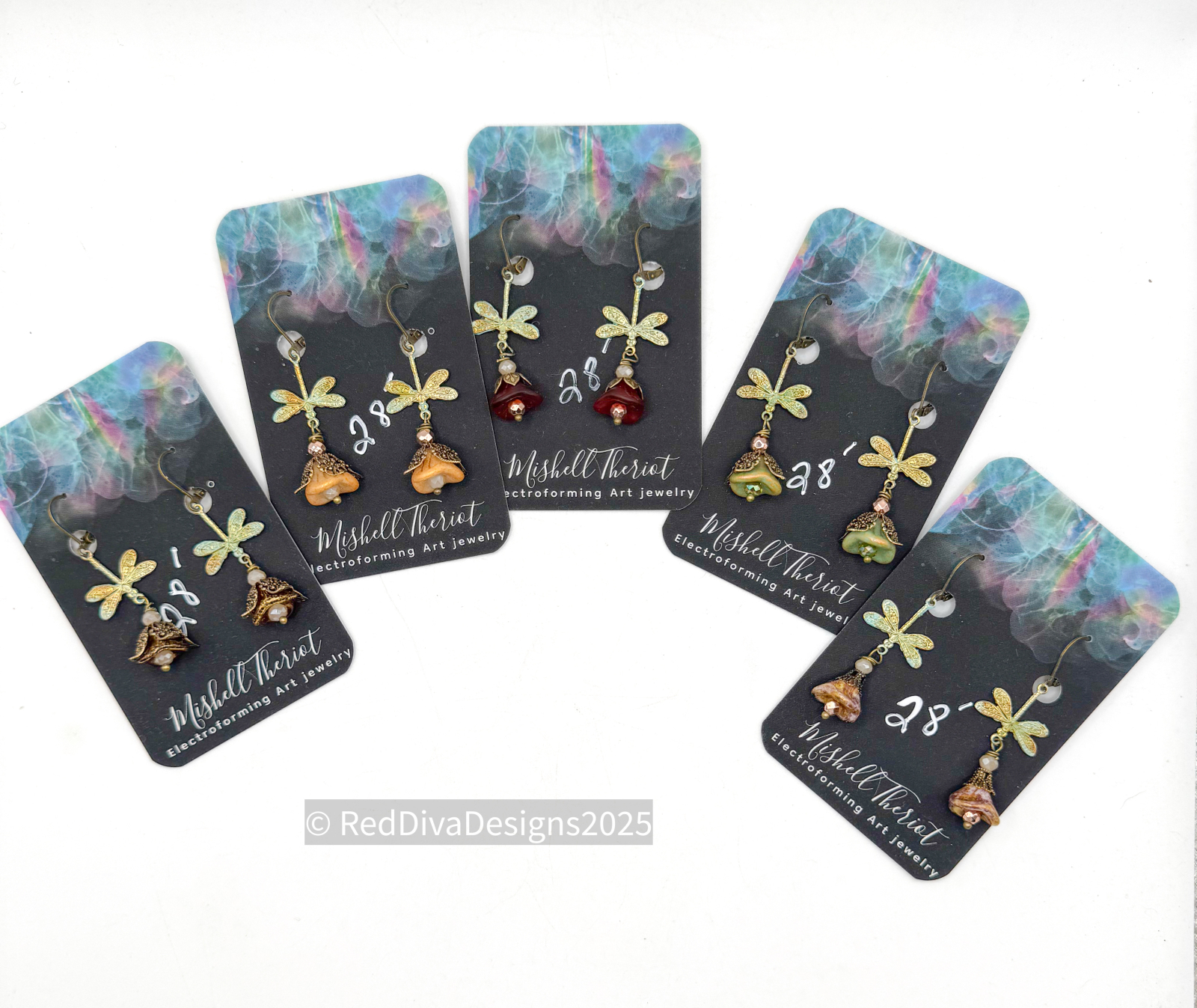 Verdigris patinaed and sealed dragonflys with Swarovski crystals and lead and nickel free leverback earrings..