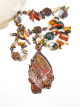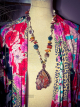Hand carved Brecciated Jasper Indian Head copper electroformed and finished on a hand knotted necklace 28" long filled with Ocean Jasper, Moukaite and Red Jasper