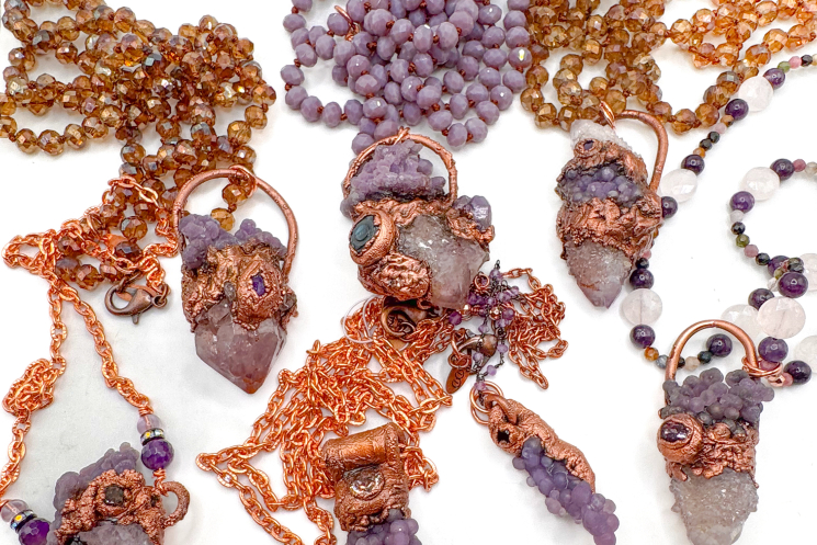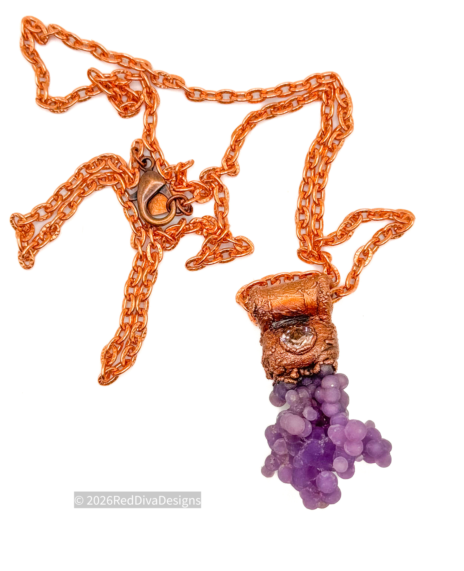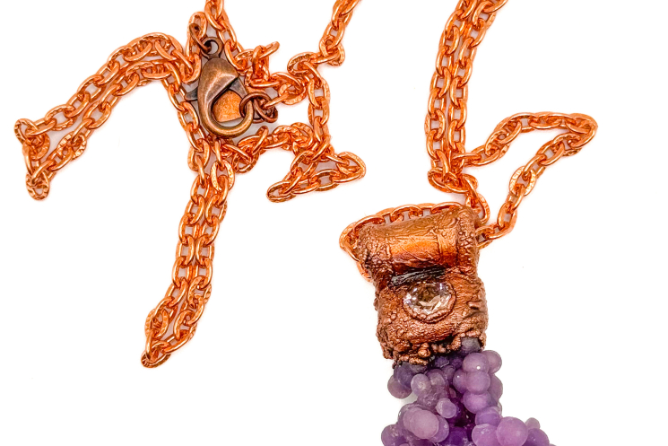 Grape Agate copper electroformed and finished on solid copper 26" long chain. Can be adjusted simply message me!