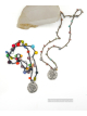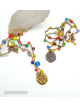 An organic vibe..... Vintage Mardi Gras glass beads crocheted with a rustic brown fleur de lid pendant 19" long.