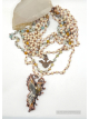 Hand carved Ocean Jasper Phoenix copper electroformed and finished on several strands of Howlite bead chain with accent Amazonite chain featuring a flying rustic heart. Shortest length 17" and longest with phoenix 22" long