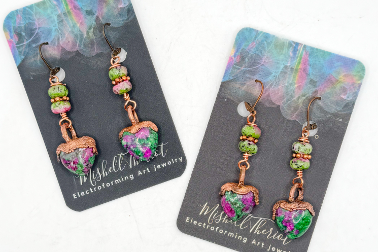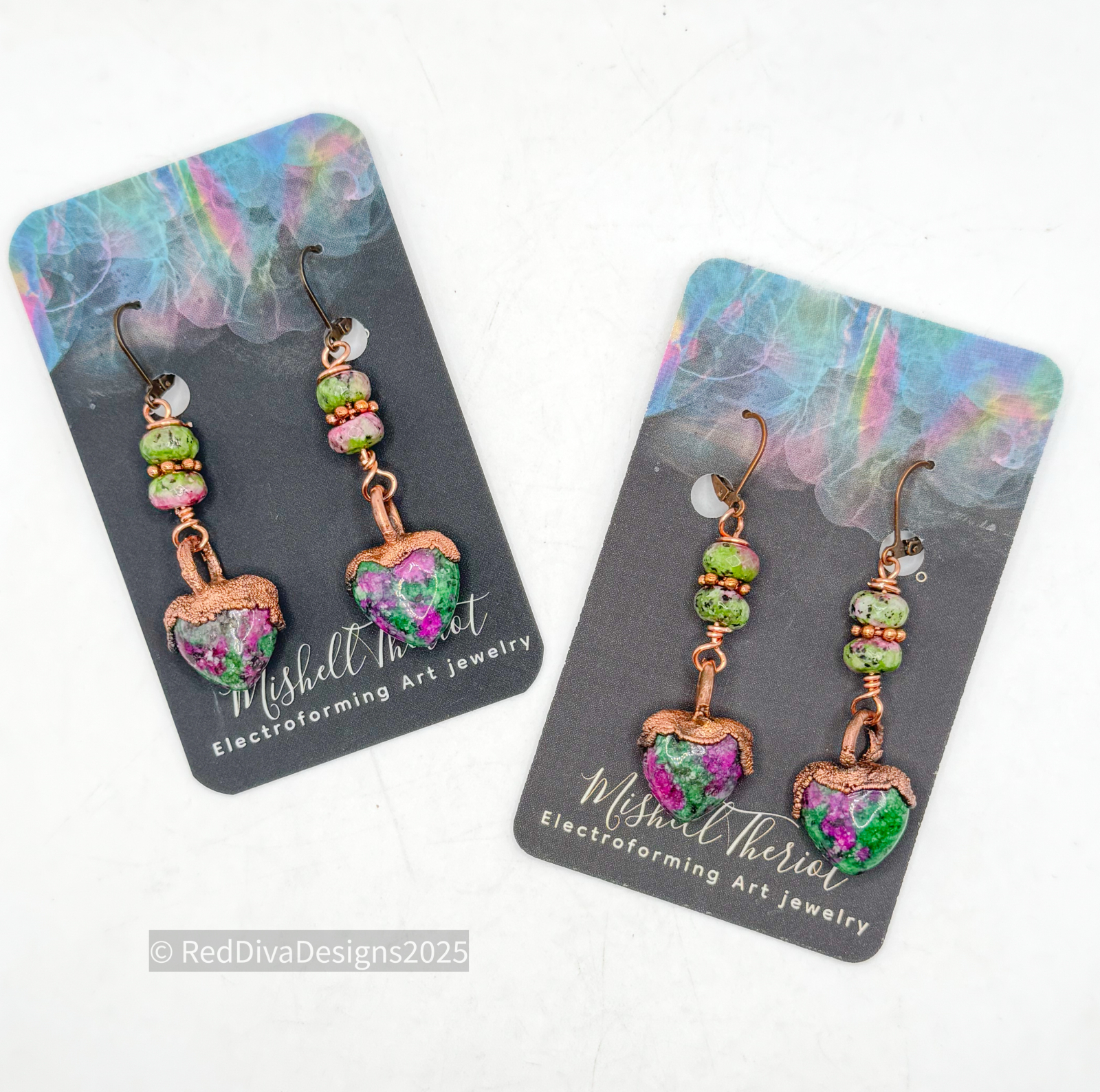 Tiny petite Ruby Zoisite melted hearts copper electroformed and finished on lead and nickel free copper lever back earrings. Very sweet and lightweight!